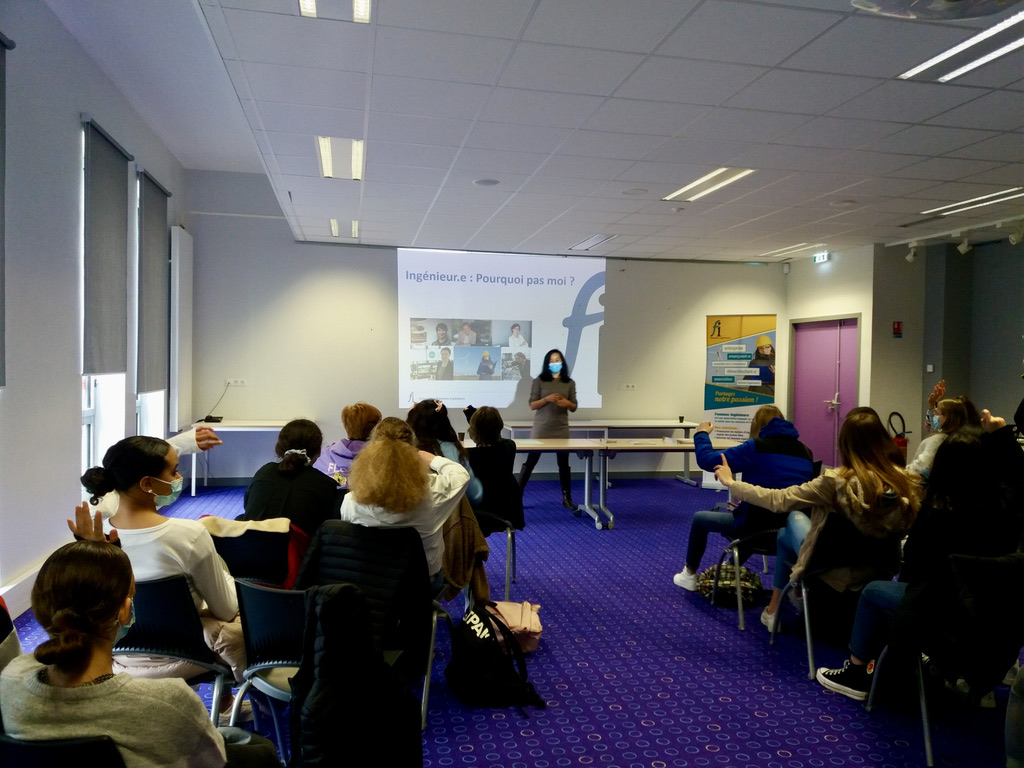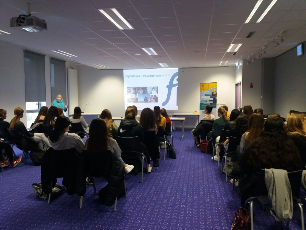 Les collégiennes de 3° ont pris conscience que beaucoup de métiers existaient en plus de ceux qu'elles pouvaient voir ou envisager, et que les métiers techniques pouvaient être exercés par des filles. Merci à Duc Anh Duong et Anne-Marie Jolly pour leurs témoignages et l'animation dynamique de leur présentation.