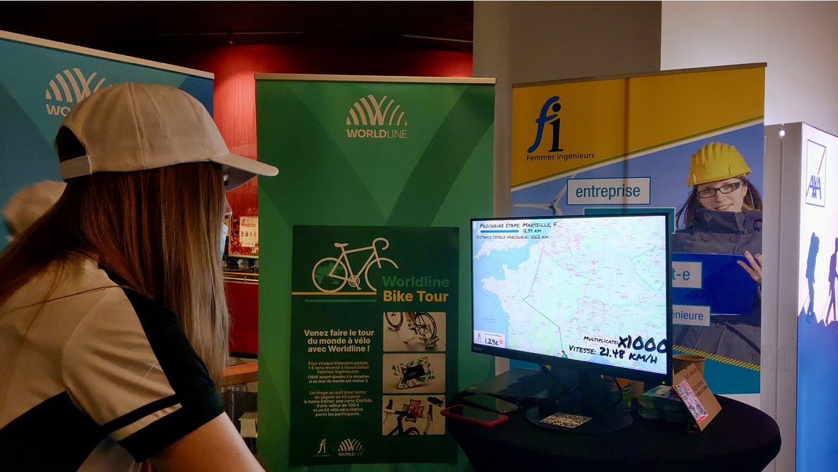 Le Devfest Lille 2021, c'est une journée de conférences et d'échanges sur les sujets du web, du mobile, du cloud et des technologies Google. Worldline a invité les participants à venir faire le tour du monde à vélo sur son stand pendant les pauses en s'engageant à reverser 1€ à FI pour chaque kilomètre pédalé. Merci à Wordline de ce don et de la reconnaissance des actions de FI pour les femmes dans le secteur du numérique. Deux tours du monde ont été réalisés!